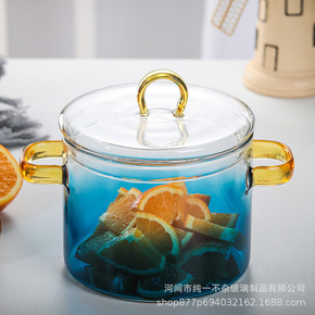 铁把玻璃汤锅 可电陶炉加热煮面炖锅 家用带盖双耳玻...