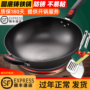 凹面电磁炉专用锅凹形铁锅圆底铸铁生铁凹式电磁灶炒锅...