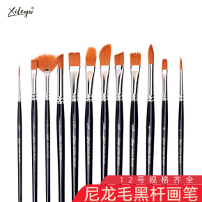 习勒12支装短杆铜管尼龙毛水粉丙烯画笔尼龙毛水彩笔...