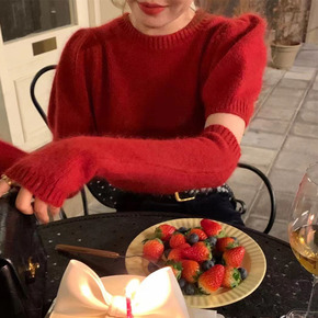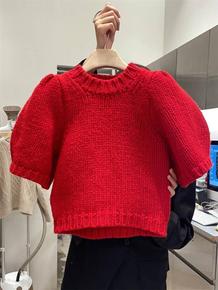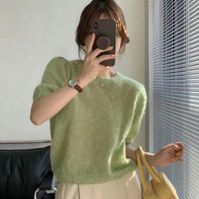 韩国东大门2022春季新款纯色短袖圆领套头针织毛衣...
