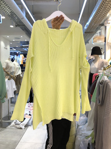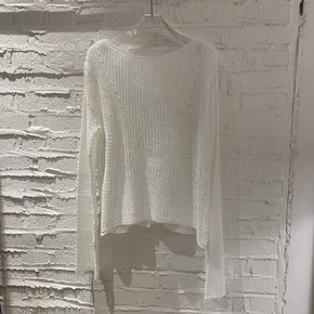 韩国东大门2021早秋女新款慵懒风破洞毛衣透视开叉...