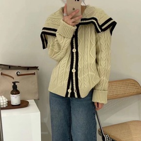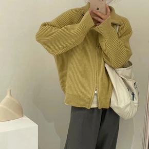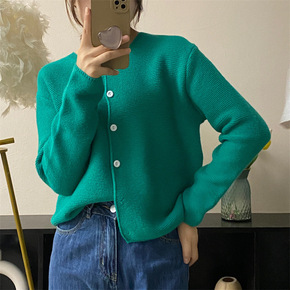 韩国东大门2021年秋季新款慵懒风软糯针织开衫纯色...