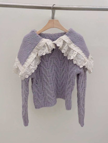 韩国东大门2022春季新款女装甜美蕾丝钩花宽松针织...