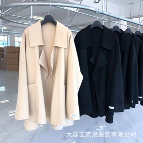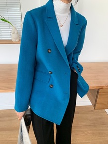 韩国东大门双面羊绒羊毛大衣 高级蓝短款西服韩版 女...