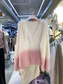 韩国东大门2022春装新款宽松长袖钉珠菱形拼色毛针...