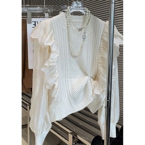 韩国东大门2021冬季新款甜美减龄木耳边拼接上衣设...