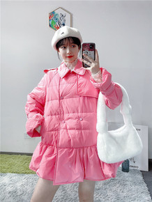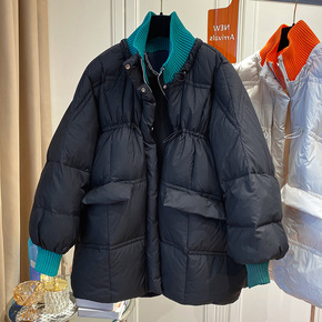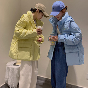 2021年港风糖果色抽绳收腰羽绒服女工装款大口袋连...