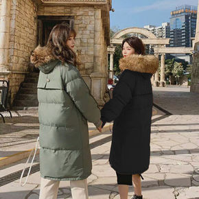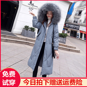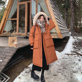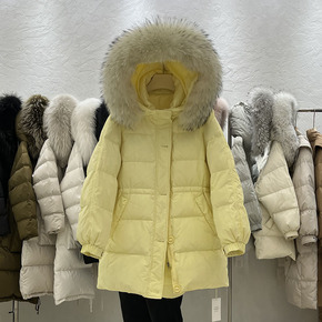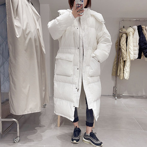 韩国东大门2021年新款韩版收腰连帽羽绒服女中长款...