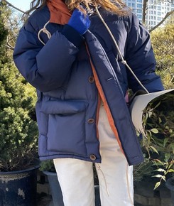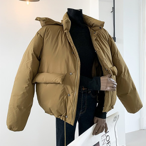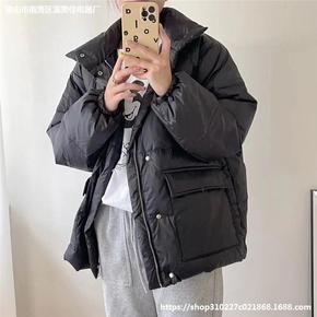 2021冬季韩国东大门洋气大口袋宽松小个子短款面包...