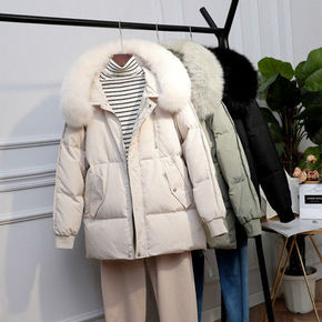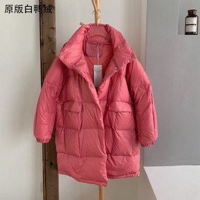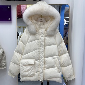 韩国东大门代购2021冬季新款简约宽松连帽白鸭绒加...