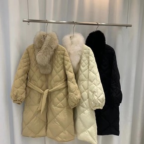 2021韩国东大门新款狐狸毛围脖菱形格腰带长款女士...