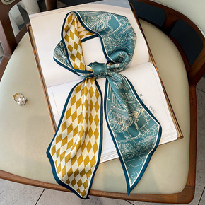 2022新款春秋仿丝时尚小丝巾装饰职业小领巾围脖现...