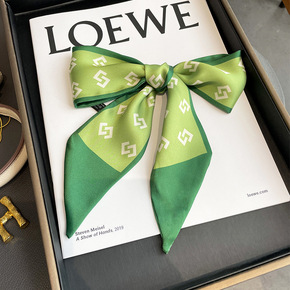 秋冬新款欧美细窄长条丝巾女字母印花职业领巾发带绑包...