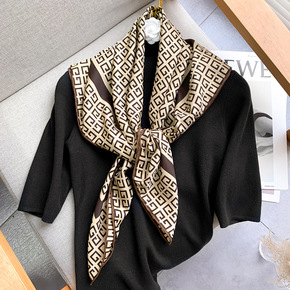 新款仿真丝巾女跨境欧美批发90*90CM 方巾简约...