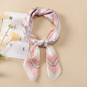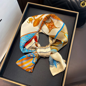 70缎面雪纺丝巾女 法式新款仿真丝十匹马印花小方巾...
