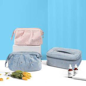 工厂新款赠品便携女士手拿化妆收纳袋大容量丝绒布旅行...