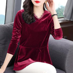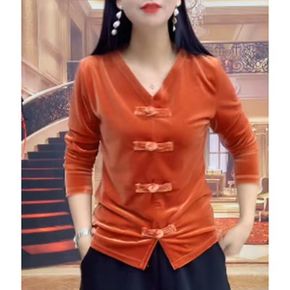 2022春款5色7码精致做工金丝绒上衣女中长款v领...