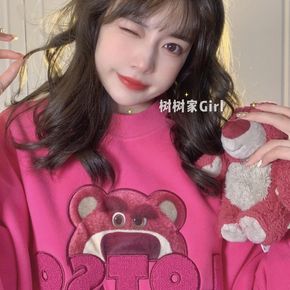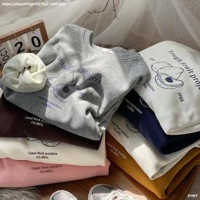 刺绣图案【保暖/银狐绒】学院风圆领宽松卫衣女可爱加...