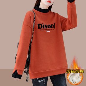 清仓棉加绒加厚中长款假两件卫衣女打底衫2021秋冬...