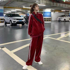 布町Studio 欧美加绒加厚运动休闲两件套时尚宽...