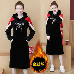 棉加绒加厚卫衣中长款女装2021冬装休闲韩版宽松胖...