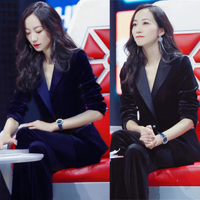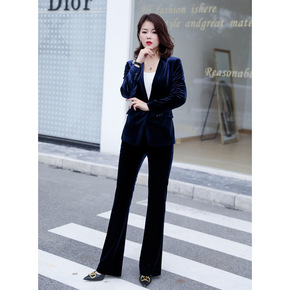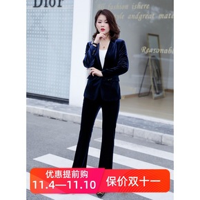 2021韩国秋冬金丝绒西装套装女休闲时尚气质职业O...