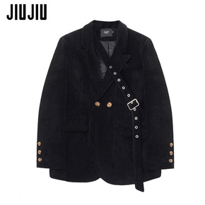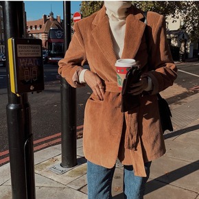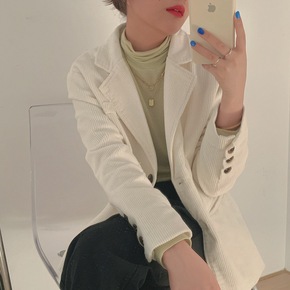 实拍2021秋冬新款韩版小众复古休闲宽松灯芯绒西装...