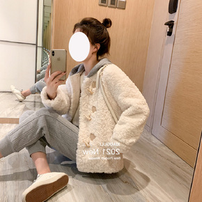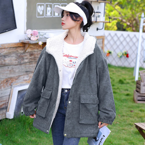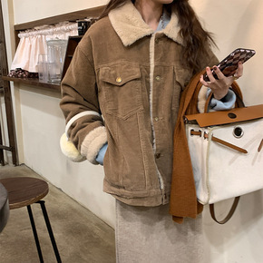 实拍现货灯芯绒棉服女冬季宽松加厚羊羔毛外套小众设计...
