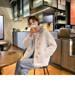 2021冬复古洋气显白温暖双面yang绒呢子大衣手...