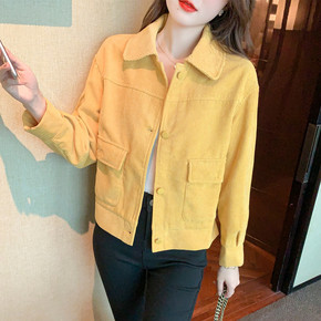 灯芯绒短款外套女装2021秋冬新款韩版宽松百搭设计...