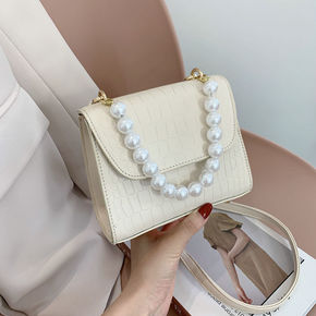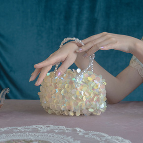 链条包包女夏斜挎小香风手工亮片小包珍珠手提百搭复古...