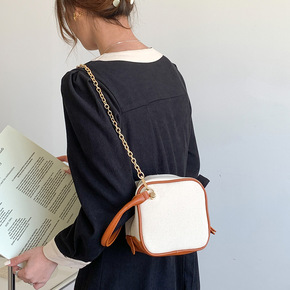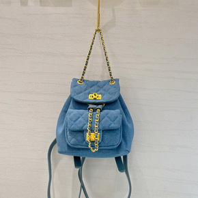 小香风帆布牛仔布包双肩包2022新款网红爆款菱格链...