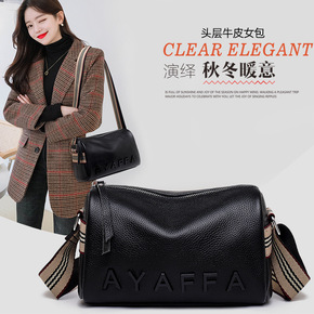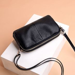 牛皮斜挎包真皮女包单肩包双拉链手拿包头层牛皮软皮小...