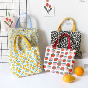 日韩小清新碎花手提包可爱莓午餐便当包年新款外出遛弯...