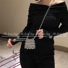 水晶玻璃链条串珠编织包包斜挎迷你小圆包2020春新...