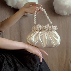珍珠手提包女复古小包夏配旗袍包包手提民国古风的玫瑰...