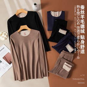 德绒无痕女士保暖内衣套装修身加绒加厚打底衫发热秋衣...