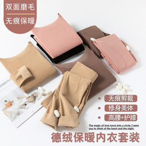 德绒保暖内衣女套装 秋冬加厚磨毛无痕高腰保暖衣打底...