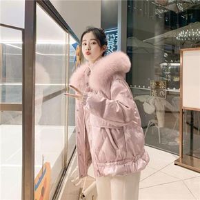温柔系棉服女2021新款学生棉袄女立领宽松加厚面包...