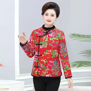 大码红花中国风棉袄妈妈装绒棉衣冬装新款女士花大棉衣...