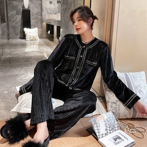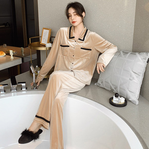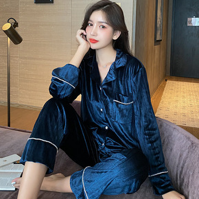 新款天鹅绒睡衣女士秋冬家居服两件套V领丝绒休闲套装...