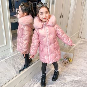 冬季新款女童棉衣韩版中大童儿童中长款加厚羽绒棉大毛...