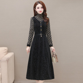 中老年罩衣妈妈装秋冬装中长款棉衣中长款金丝绒加绒加...