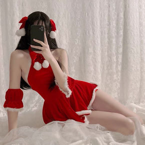梦幻:小甜心性感网红圣诞战裙红色cos丝绒蝴蝶结制...