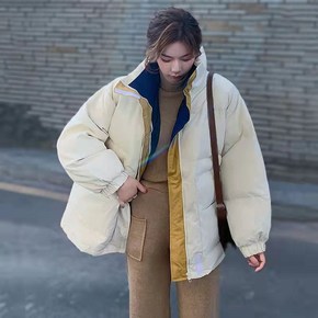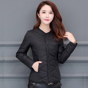 韩版都市休闲黑色羽绒棉加厚拉链立领羽绒服...