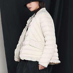 加厚高品质轻薄气质通勤高档无帽羽绒棉欧美蓝色拉链羽...