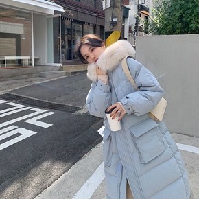 90绒真狐狸毛领羽绒服女中长款2021年新款白鸭绒...