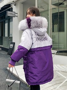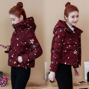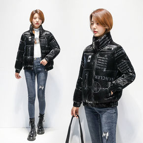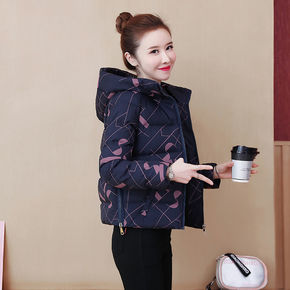 羽绒棉女2021年新款时尚免洗亮面印花帽子可拆卸保...