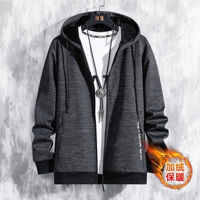 秋冬款加绒加厚卫衣男士金丝绒开衫夹克外套宽松大码运...