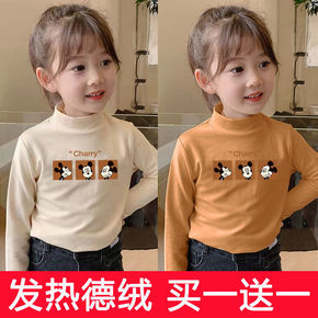 加厚德绒打底衫女2021秋冬韩版中大童半高领条纹T...